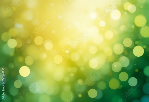 © Pungkas, Fototapeta premium soft green and yellow light bokeh background with glowing circular shapes creating soothing