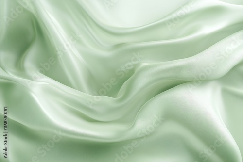 Obraz premium Soft green silk fabric drapes elegantly creating gentle waves and folds in...