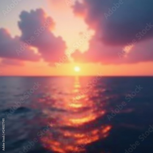 Obraz premium Soft, hazy sunset hues paint the blurred ocean horizon , peaceful, sky