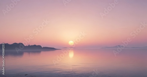 © Omsin, Fototapeta premium Soft, hazy sunset hues, pale pink, blue, yellow blend , soft, opaline