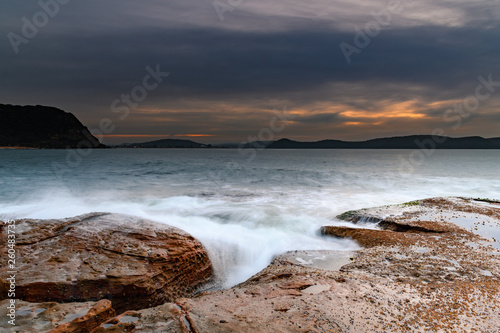 © Merrillie, Obraz premium Soft High Cloud Sunrise Seascape from Rock Platform