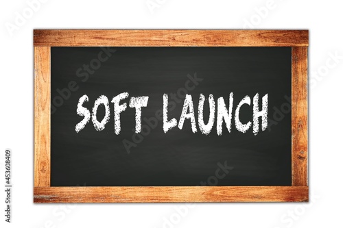 Fototapeta premium SOFT LAUNCH text written on wooden frame school blackboard.