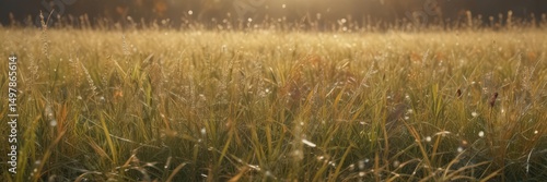 Fototapeta premium Soft light bathes abstract autumn meadow, dew-kissed grasses glow , grass,...