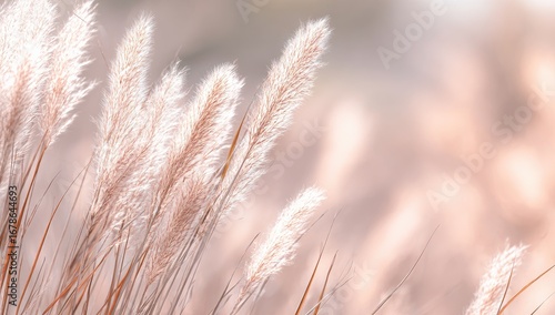 Obraz premium Soft, light beige grasses sway gently in a dreamy, pastel-toned background
