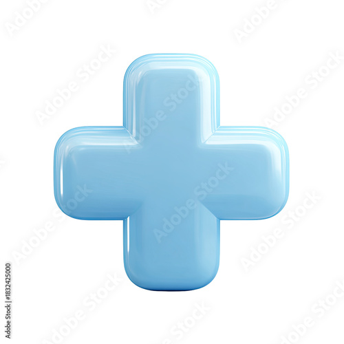 © sogap, Fototapeta premium Soft light blue 3D plus sign rendered with a glossy finish and smooth rounded modern edges