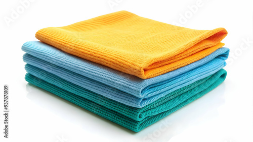 © Albaloshi, Fototapeta premium Soft microfiber cloths, perfect for cleaning delicate surfaces. Multicolored microfiber cloths