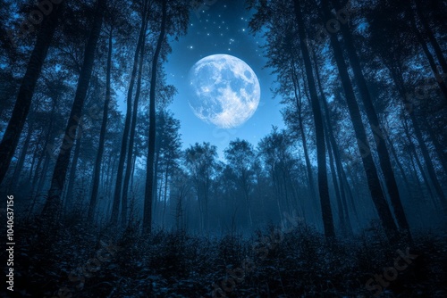 Naklejka premium Soft Moonlit Forest with Glowing Stars