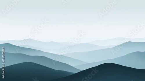 © Alina, Obraz premium Soft morning mist blankets rolling hills in a serene landscape at dawn