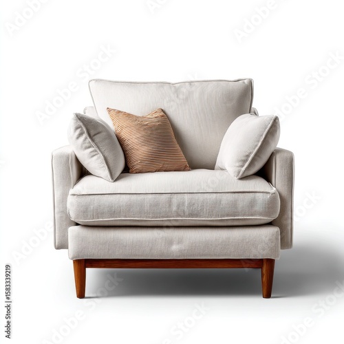 © Sawat, Obraz premium Soft oversized accent chair with plush upholstery isolated white background, no shadow, cozy modern look