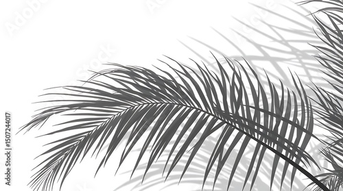 Obraz premium Soft, pale gray shadows of palm fronds overlay a white background.