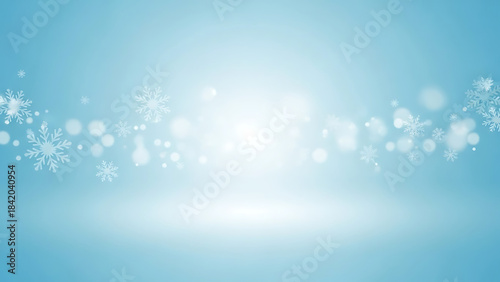 © Rahizi, Fototapeta premium Soft pastel blue Christmas background with minimal abstract snowflakes, gentle glow, and uncluttered layout