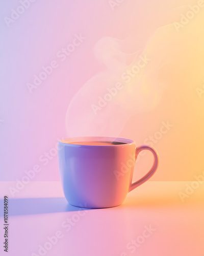 Fototapeta premium Soft Pastel Coffee Cup with Steam in Minimal Setting
