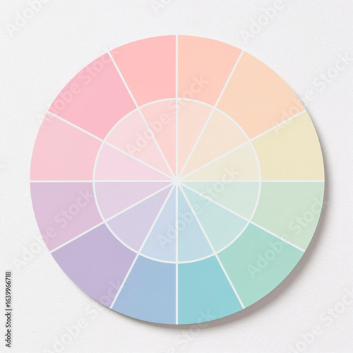 © Irina Kado, Obraz premium Soft pastel color palette wheel against a light background for creative design and inspiration