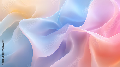 © Benjaporn, Fototapeta premium Soft pastel-colored abstract background with flowing shapes and smooth gradients in light pinks blues and yellows