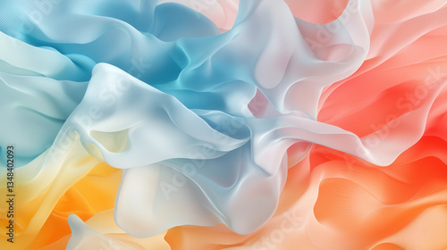 © Worakit, Obraz premium Soft pastel colored abstract background with flowing, translucent fabric like textures creating dreamy and smooth gradient