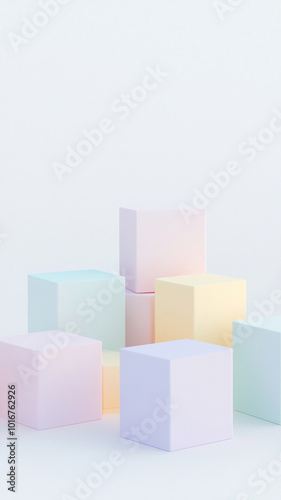 Obraz premium Soft pastel colored 3D blocks arranged on white background create serene and...