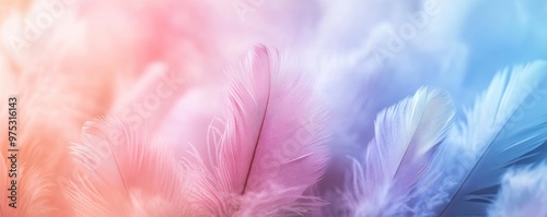 Obraz premium Soft pastel colored feathers on a blurred background