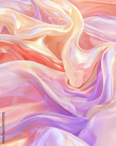 © AssanAI.Studio, Obraz premium Soft Pastel Drapery Fabric with Texture and Flowing Waves