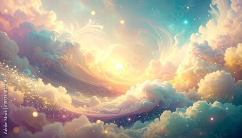 Fototapeta premium Soft pastel energy clouds swirling around a radiant core