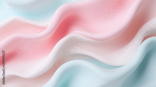 © Tackey, Obraz premium Soft Pastel Fabric Waves in Light Blue, Pink, and White Colors with Smooth Flowing Texture for Background Use