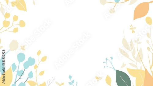 Obraz premium Soft Pastel Floral Border with Delicate Leaves and Twigs.