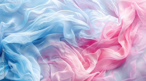 © FANTASY WORLD, Obraz premium Soft pastel gradient transitioning from pink to baby blue in an ethereal design.