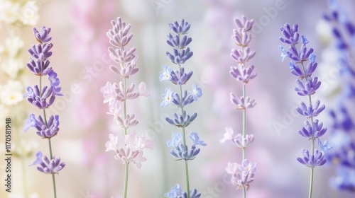 Obraz premium Soft pastel gradients display blooming lavender and mint flowers in a serene,...