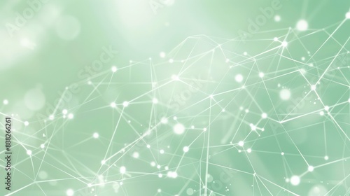 Obraz premium Soft pastel green background with white dots connected by thin, luminous...