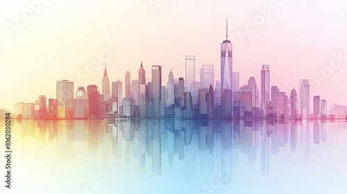 Obraz premium Soft Pastel Minimalist City Skyline Art