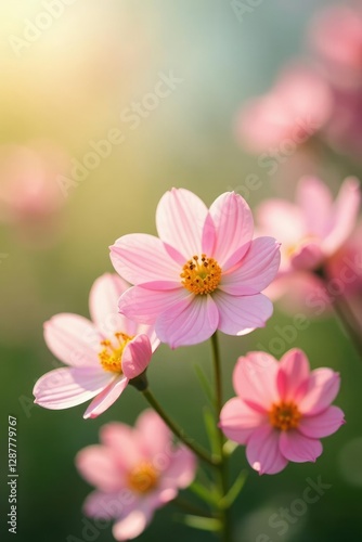 © Atittaya, Fototapeta premium Soft pastel pink flowers blooming in a garden, yellow, blossom, delicate