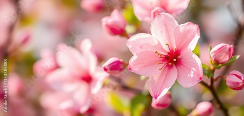 Fototapeta premium Soft pastel watercolor blooms, blurred delicate petals, spring bokeh effect,...