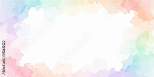 Fototapeta premium Soft Pastel Watercolor Frame Background with Abstract Rainbow Paint Border
