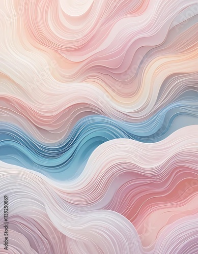 © Kiki, Obraz premium Soft pastel wave patterns interwoven with abstract line art