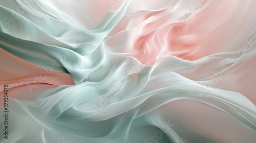 Fototapeta premium Soft pastel waves of light mint, pale pink, and soft gray, with dynamic,...