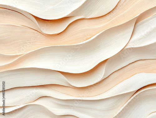 © photobuay, Obraz premium Soft peach and cream wavy layers create seamless, earthy abstract texture, evoking calm and natural elegance
