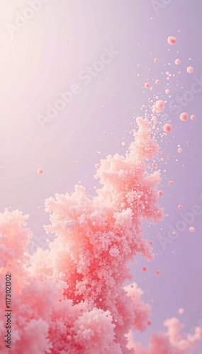 © Prasert, Fototapeta premium Soft peach dust specks drifting across a pale lavender-gray background, lavender, peach, soft