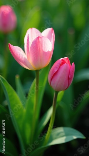 © Sarayuth, Naklejka premium Soft petals unfolding amidst lush green foliage, spring, blooming, garden