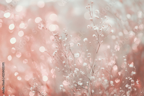 Fototapeta premium Soft pink abstract background with dreamy blurred lights, subtle sparkles,...
