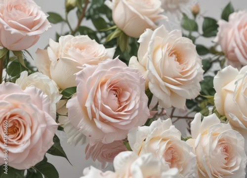 Obraz premium Soft pink and white roses, delicate petals, soft light, artistic, nature,...