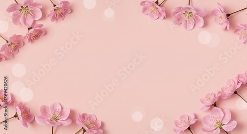 Fototapeta premium Soft pink blossoms delicately frame a pastel background creating a serene...