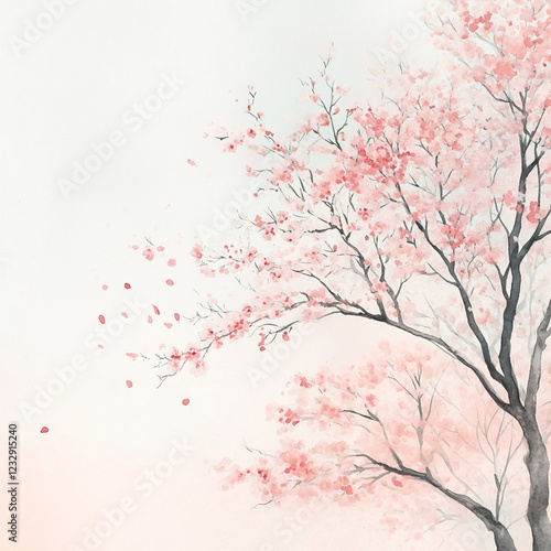 © Rudi, Fototapeta premium Soft Pink Blossoms in Traditional Ink Wash Art