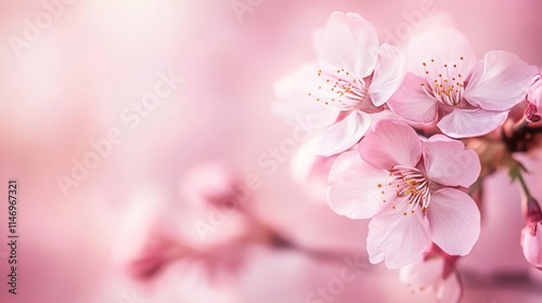 Obraz premium Soft pink cherry blossoms on a blurred sakura background, close-up shot, Minimalist style