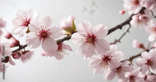 Fototapeta premium soft pink cherry blossoms on white background, spring bloom, blossom