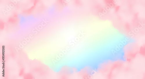 Fototapeta premium Soft pink clouds with pastel rainbow colors in sky