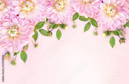 Naklejka premium Soft pink delicate blossoming dahlias, summer blooming flowers festive...