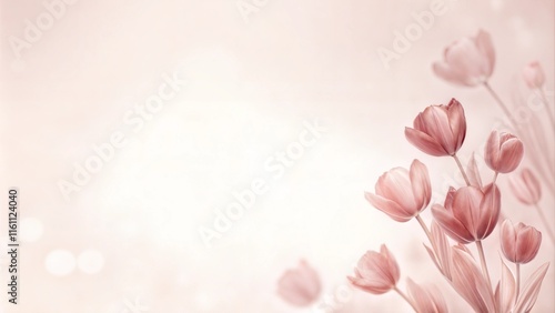 Fototapeta premium Soft pink floral background with tulips and copy space for text