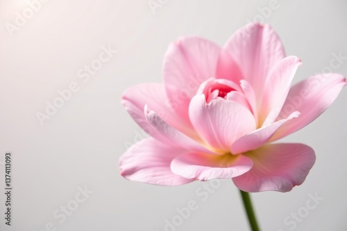 Fototapeta premium Soft pink flower with delicate petals on a white background, with a softly...