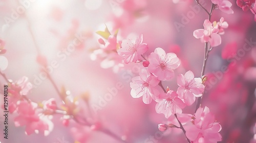 © CLOVER BACKGROUND, Obraz premium Soft Pink Gradient Background with Blurred Blossoms for Design Use