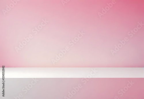© Nornat.art, Obraz premium Soft Pink Gradient Background with Minimalist Shelf Display