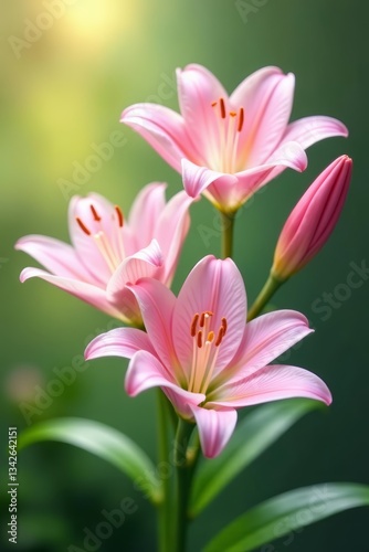 Fototapeta premium Soft pink lily flowers in dreamy garden setting, pastel colors, pastel,...